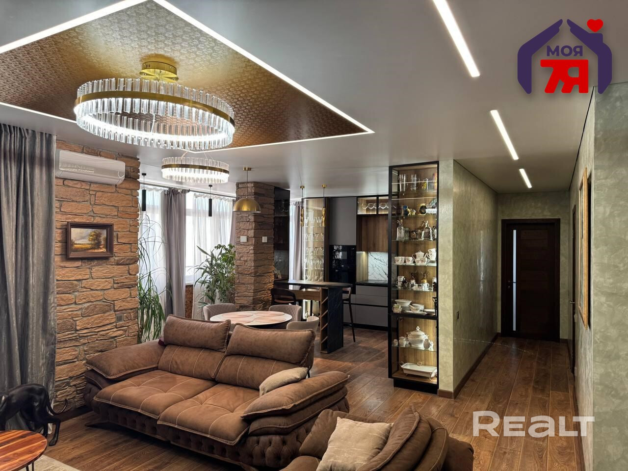 - Удобная и продуманная планировка: просторная гостиная с панорамными окнами и захватывающим видом на реку Сож, лесной массив и стадион, уютная мастер-спальня. В квартире есть балкон из спальни.
