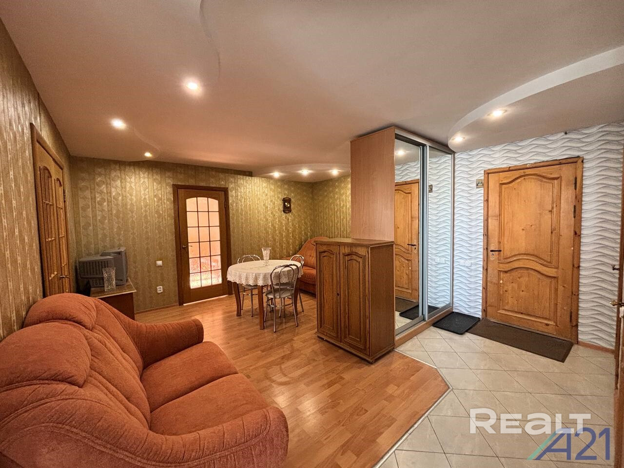 Общая площадь по СНБ 66,8 кв. м., общая площадь 63,8 кв. м., жилая - 47,5 кв. м. Просторная гостиная, раздельный санузел. Имеется подвал с оборудованной зоной хранения. Большая стоянка для машин.