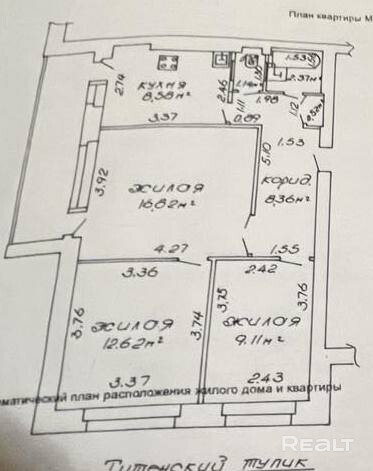 В продаже трехкомнатная квартира в кирпичном одноподъездном доме 1979 г.п. в центре микрорайона Сельмаш Железнодорожного района г. Гомеля. Титенский тупик,48, между улиц 50 лет Гомсельмаша и Озерная. В квартире три светлых просторных комнаты-квадратный зал 16 м с выходом на лоджию, 2 спальни 12,6 и 9,1 м, большая кухня 8,6 м с выходом на лоджию, раздельный санузел и коридор 8,6 м. Широкая лоджия 6,5 м в длину с видом на зеленый двор. Есть телефон, домофон, приборы учета воды, подвал, широкая прямоугольная площадка на этаже, аккуратный подъезд. Низкие коммунальные платежи в отопительный сезон. Квартира без ремонта. Уютный непроездной двор, хорошие соседи. В шаговой доступности вся городская инфраструктура- остановки городского транспорта, 2 садика, школа №12, озеро с прогулочной зоной и пляжем, магазины, кафе. Возможен( но не обязателен) обмен на двухкомнатную квартиру с ремонтом.