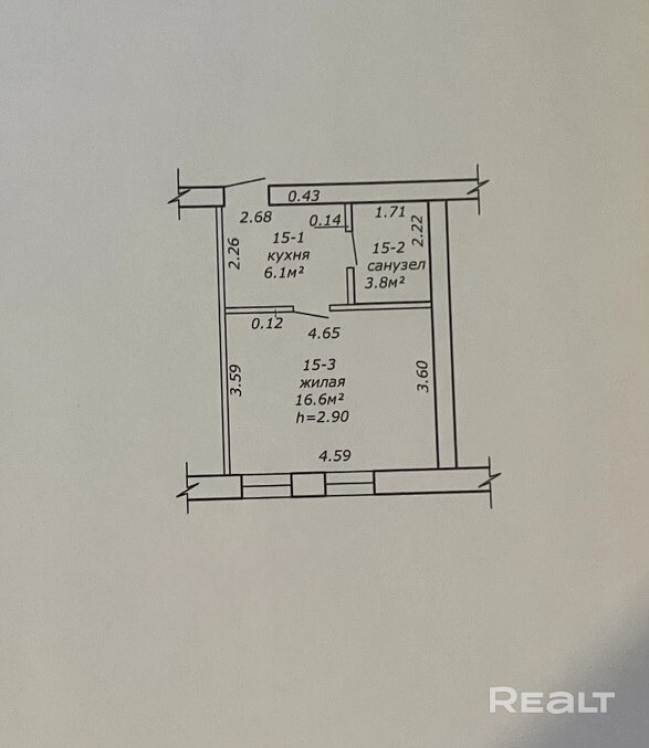 • Общая площадь: 26.5 кв. м.