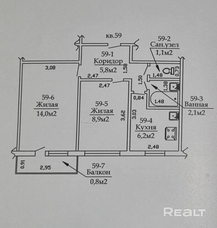 Купить 2-комнатную квартиру, г. Гомель, ул. Дворникова, 13