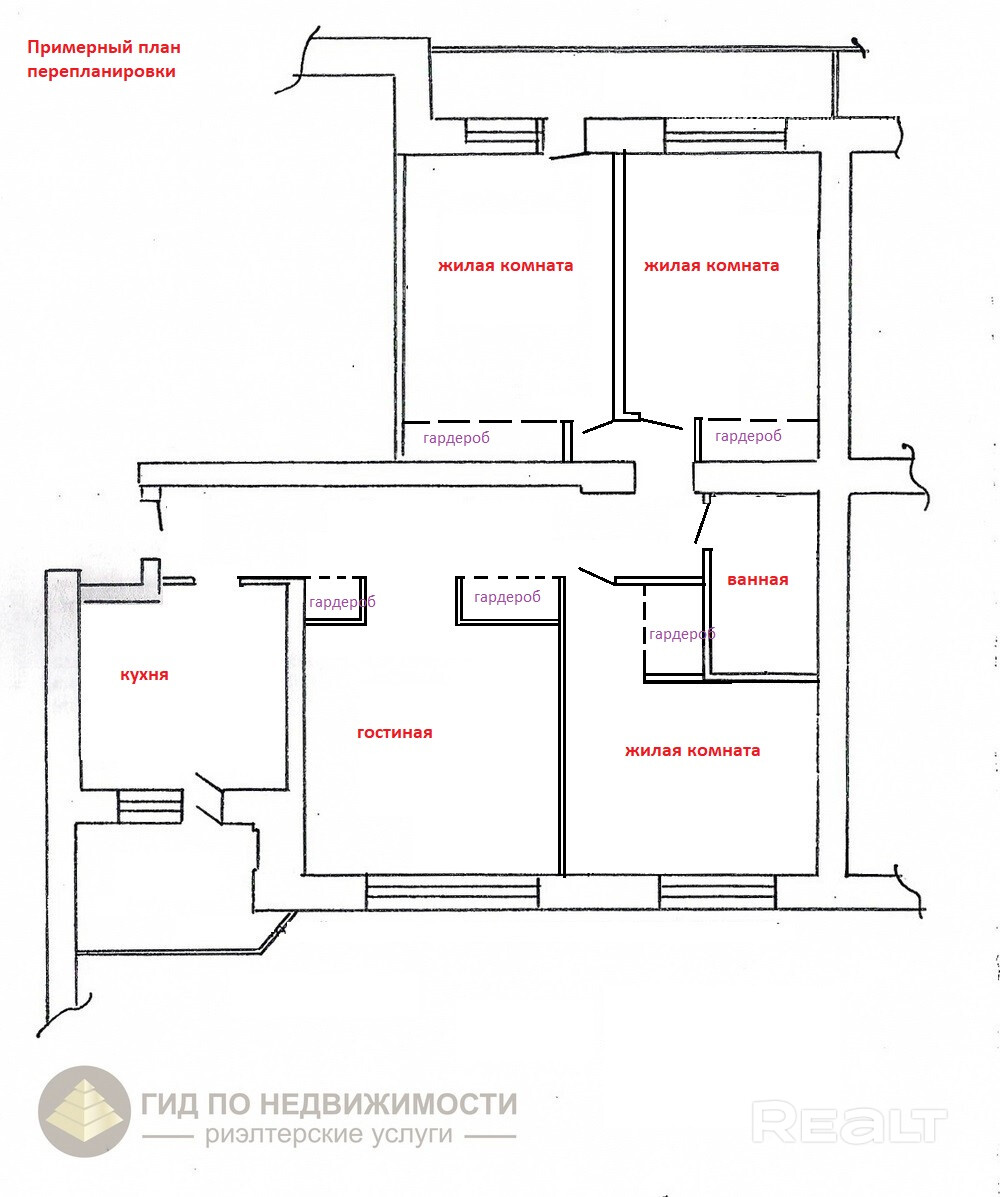 Отсутствие несущих перегородок позволяет сделать перепланировку по индивидуальному проекту.