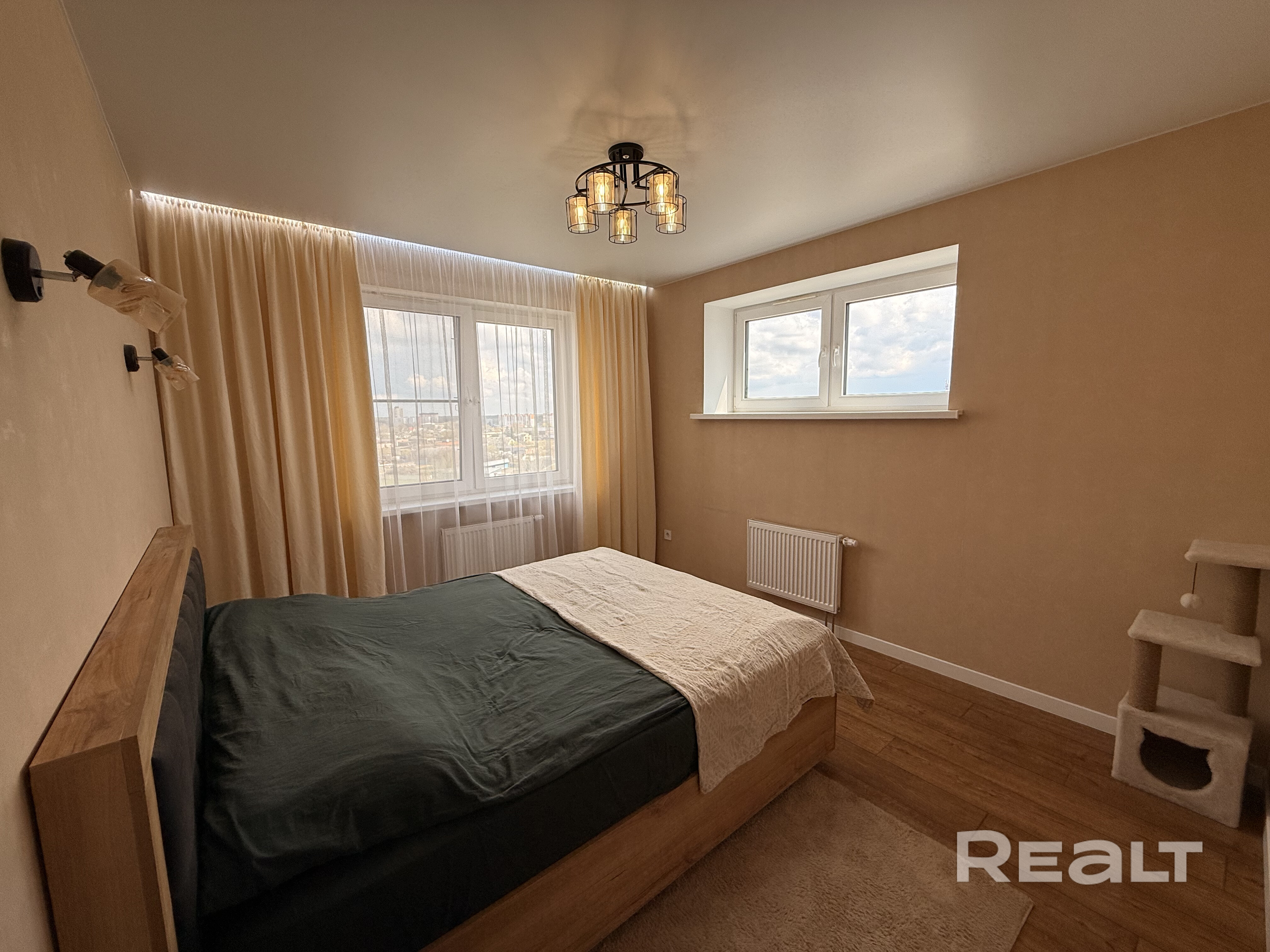 2-комнатная квартира 60.7 м² в новом доме 2020 г., ул. Белого 34, Гомель. • 2 раздельные комнаты, кухня 12 м², санузел совместный • 11/17 этаж • Качественный ремонт: ламинат Quick Step в комнатах, керамогранит на кухне/в прихожей/в санузле (пол и стены), двери Profildors, кухня Egger (плёнка AGT Supramat) • Остаётся вся мебель и большая часть техники Инфраструктура рядом: • «Грошык», «Соседи» (ПВЗ WB и Ozon), «Антресоль» — 2-3 мин • Школа №75 и детсад — 5-7 мин • Остановка — 2-3 мин