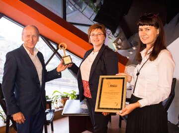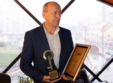 Свою награду — диплом и статуэтку с золотым ключом — учредитель «Фирмы 2К и К» Юрий Крупица и сотрудники получили в офисе из рук заместителя директора по маркетингу портала недвижимости Realt.by Елены Потапович.