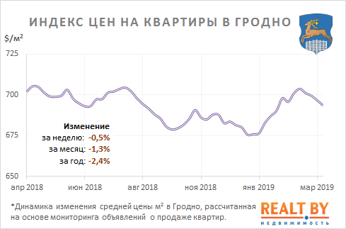 Мониторинг цен предложения квартир в Гродно за 25 марта — 1 апреля 2019 года