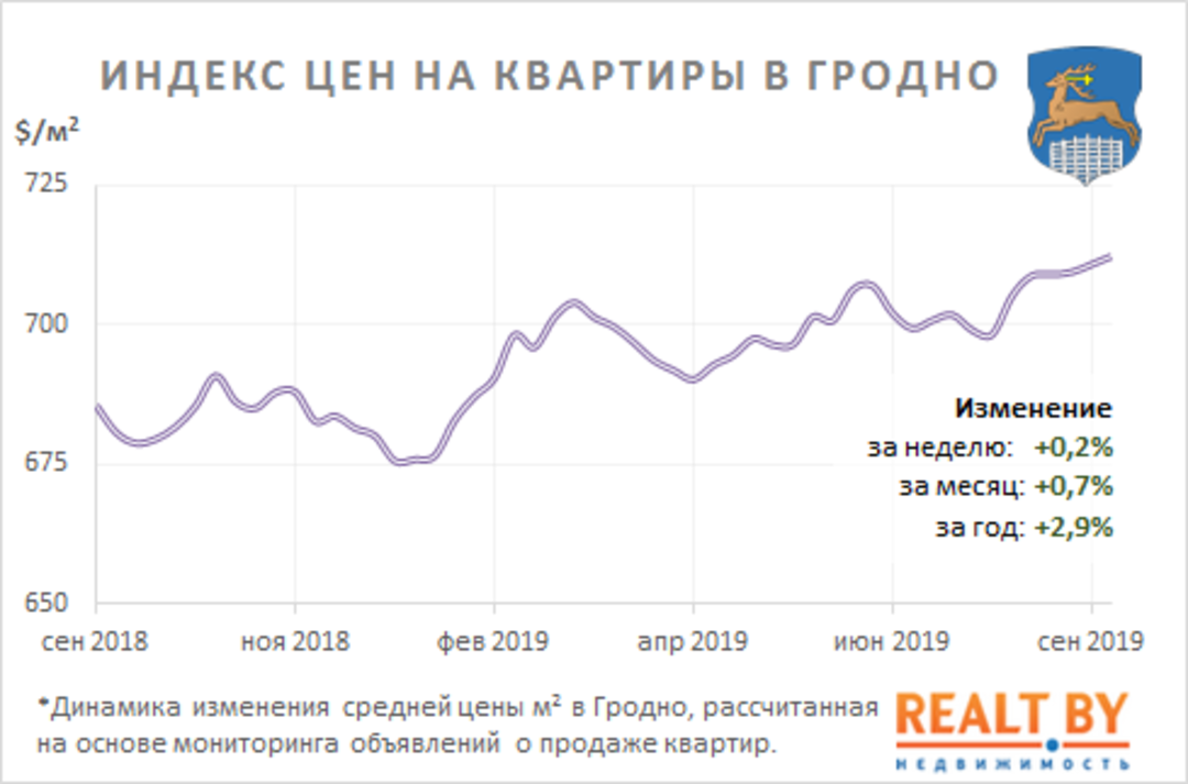 Мониторинг цен предложения квартир в Гродно за 2−9 сентября 2019 года