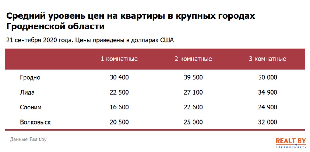 Мониторинг цен предложения квартир в Гродно и городах Гродненской области за 14−21 сентября 2020 года