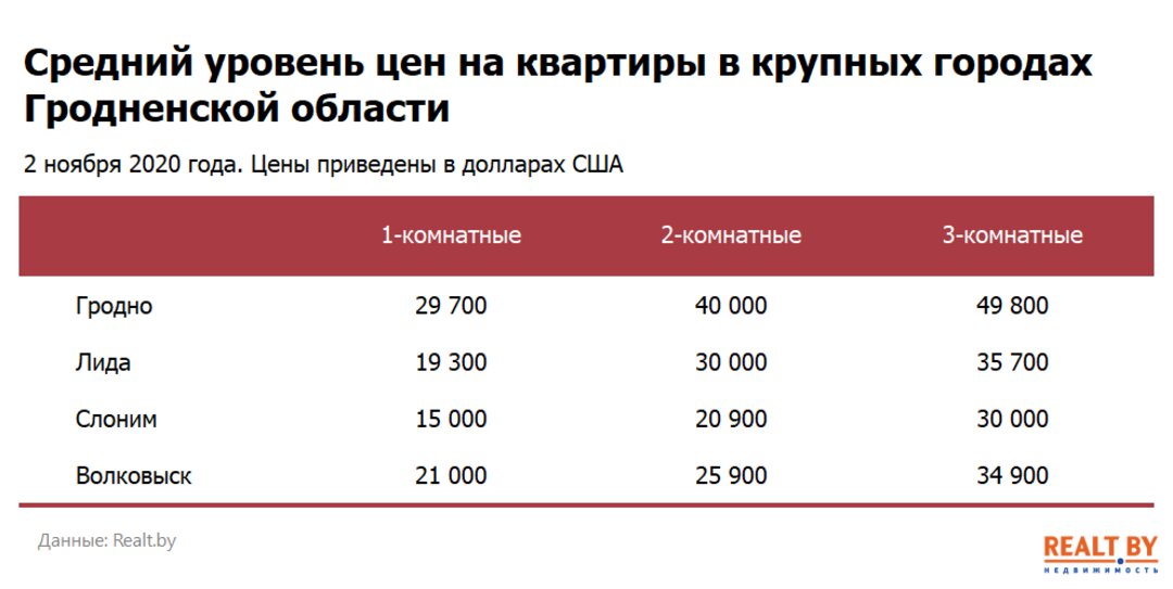 Мониторинг цен предложения квартир в Гродно и городах Гродненской области за 26 октября — 2 ноября 2020 года