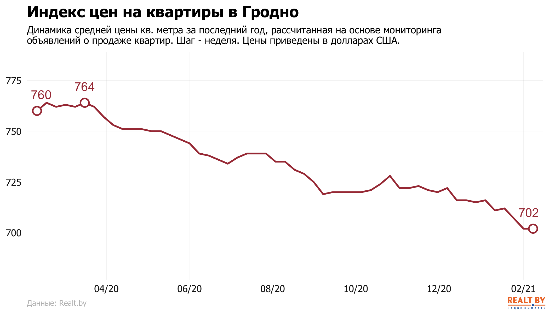 Мониторинг цен предложения квартир в Гродно и городах Гродненской области за 1−8 февраля 2021 года