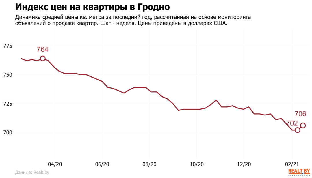 Мониторинг цен предложения квартир в Гродно и городах Гродненской области за 8−15 февраля 2021 года