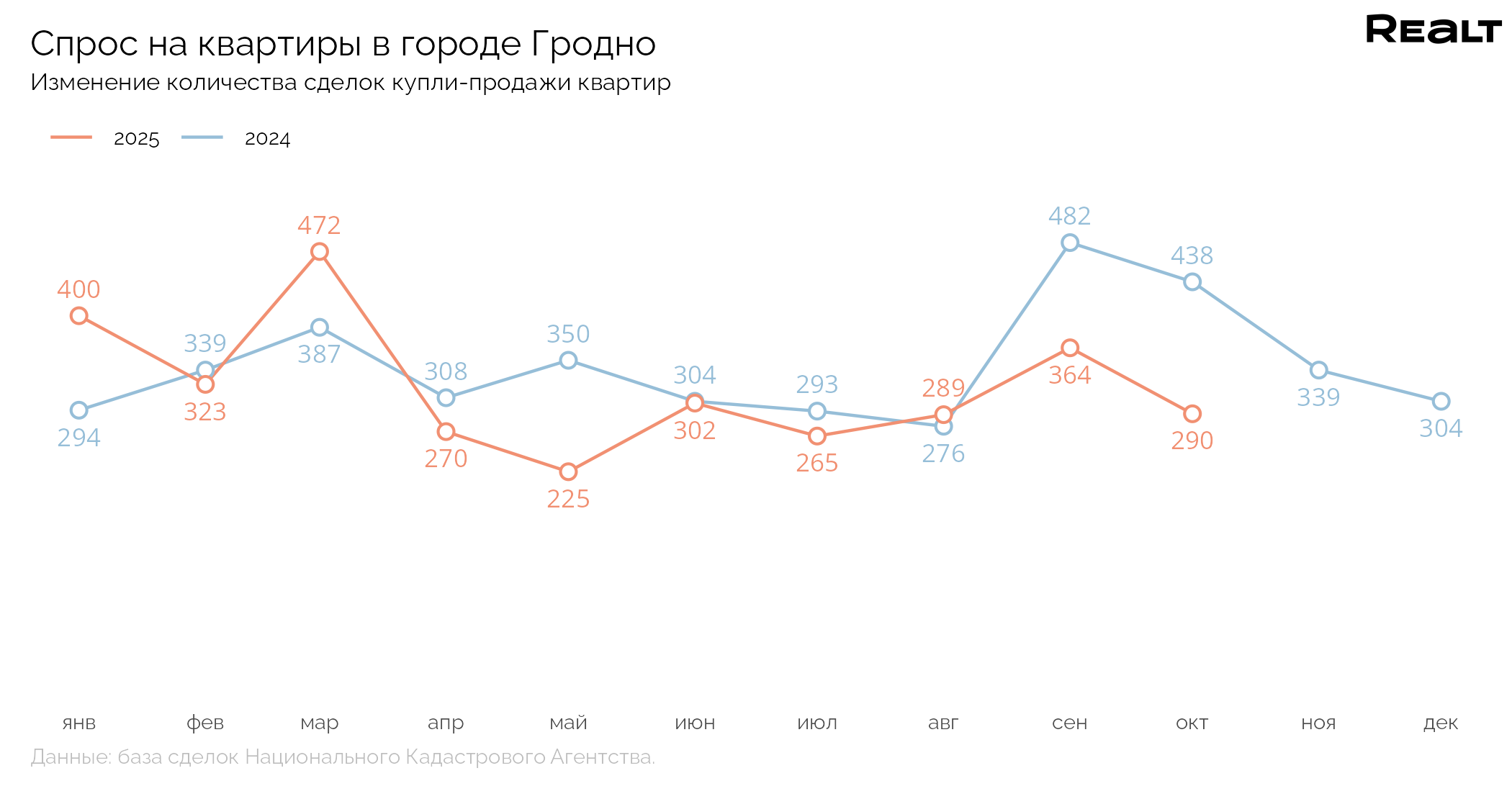 59В октябре на рынке продажи квартир резкое падение спроса. Что касается средней цены за квадратный метр, она вновь пошла вверх. Подробности и что еще происходит на рынке квартир Гродно — в аналитике Realt.