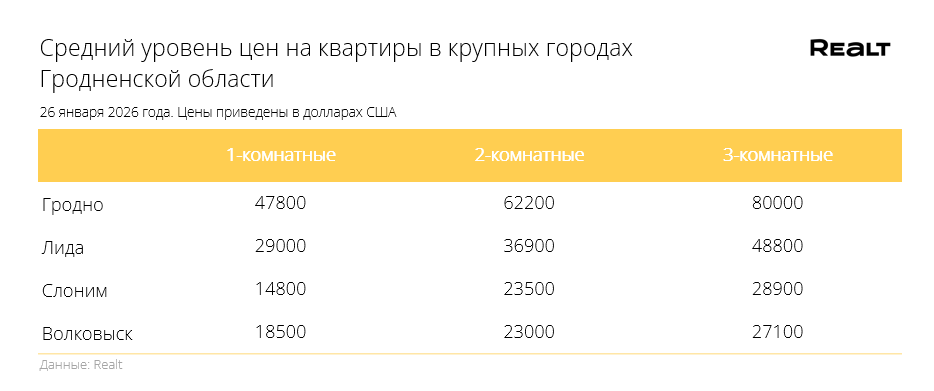 Двушки продолжают дорожать. Что произошло со стоимостью квартир в Гродно и области за 19−26 января 2026 года