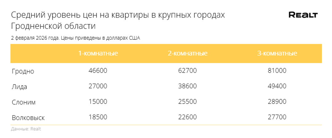Продолжается рост средней стоимости за квадратный метр. Что произошло со стоимостью квартир в Гродно и области за 26 января — 2 февраля 2026 года