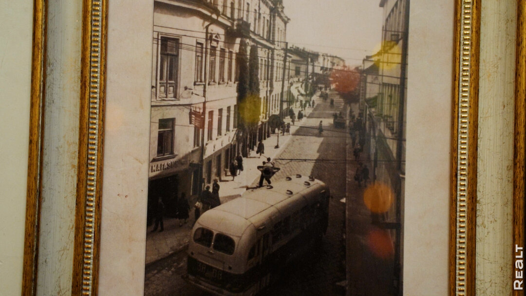 Мужчина увлекается историей, поэтому стены и полки украшены фотографиями Гродно в разные периоды. На снимках можно разглядеть Фару Витовта, которую в 1961 году взорвали по распоряжению властей. До этого готический костел просуществовал почти 570 лет. Здесь же виды на Старый замок до реконструкции и появления драмтеатра.
