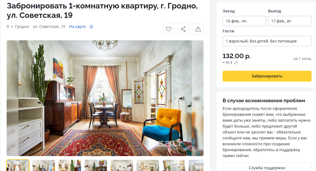 И вы так же легко можете арендовать квартиру на сутки не только в Гродно, но и по всей Беларуси на сервисе Realt. Бронь.