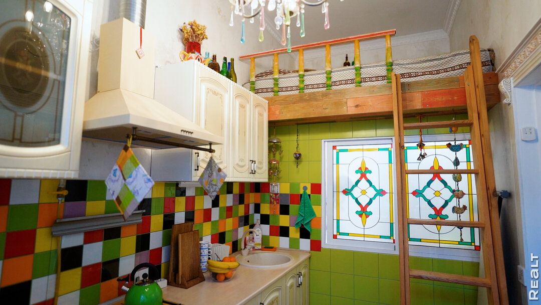 — Я планировал обустроить квартиру в винтажном стиле, но не настолько, чтобы обойтись без душа, — смеется молодой человек. — Решение нашлось быстро: отсек часть площади кухни. При этом, зону разделил на два яруса. Первый заняла ванна и стиральная машина, а эдакая мансарда со стороны кухни стала спальней.