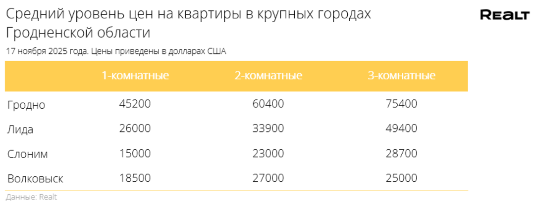 Квадрат двушек подешевел. Что произошло со стоимостью квартир в Гродно и области за 10−17 ноября 2025 года