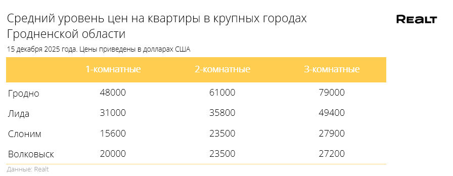 Предложение уменьшилось. Что произошло со стоимостью квартир в Гродно и области за 8−15 декабря 2025 года