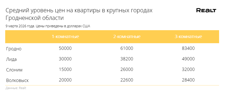 За год стоимость квадрата увеличилась на 28%. Что произошло со стоимостью квартир в Гродно и области за 2−9 марта 2026 года