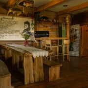 На территории находится несколько помещений для комфортного отдыха и времяпровождения. В аренду сдаётся основной дом с 4-я жилыми комнатами, баней, бассейном, просторной кухней оснащенной всеми удобствами (вся необходимая посуда, посудомойка, холодная и горячая вода, плита, духовка, холодильник и прочее), летняя терраса, шашлычная, детская площадка, сцена и многое другое. Дом вмещает себя до 12 гостей, спальных мест 5+, есть возможность сделать больше.