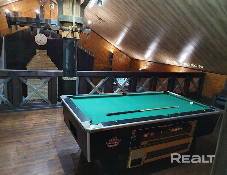 В распоряжении гостей просторный дом с оригинальным интерьером, в котором всегда царит идеальный порядок и чистота. В уютном доме расположены 6 спален, кухня, оборудованная всем необходимым для приготовления еды, сауна, банкетный зал на первом этаже, холл с бильярдным столом на втором этаже, душ и санузел.