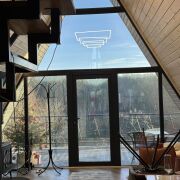 Аренда треугольного дома А-фрейм на сутки в Гродно Треугольный дом А-фрейм – это уютное место на берегу реки Неман в окружении соснового леса всего 7км от Гродно, где открывается невероятный вид на закаты и рассветы, имеется отдельная парковка для машины, тихая уютная зона барбекю и зона с сауной и уличной джакузи, а если у вас имеются домашние питомцы, вы тоже можете взять их с собой.