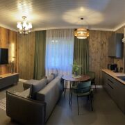 В окружении соснового леса, всего в пяти километрах от Мирского замка, на берегу живописного озера есть место, где вас ждут уединение и комфорт. На территории три дома, каждый состоит из двух номеров. В каждом номере две комнаты и четыре спальных места. У каждого номера отдельный вход и собственная терраса с зоной отдыха. Всего на базе отдыха единовременно могут разместится 24 человека. Рядом с домиками установлена зона для барбекю. Здесь созданы все условия для комфортного проживания. В номерах есть полотенца, средства личной гигиены, фен. На кухне есть вся необходимая посуда, маленький холодильник, микроволновка, электрочайник, чай и кофе. TV с голосовым управлением, пакеты «Кинопоиск» и “IVI”. Просторные и уютные комнаты позволят гостям забыть о городской суете и насладиться природой. Для активного отдыха предлагаются:• прогулки к озеру среди живописной природы, лесные пешие прогулки;• катание на квадроциклах;•катание на велосипедах;• катание на сапбордах.Проведение торжеств и дополнительных мероприятий База идеально подходит для организации небольших праздников и торжеств. Беседки с мангалами и террасы позволяют проводить дни рождения, небольшие корпоративы и семейные встречи. Гости получают возможность уединённого отдыха, сохраняя комфорт и приватность.База отдыха «Ёлки Иголки» сочетает в себе комфорт и природу, создавая идеальные условия для отдыха и праздников в любое время года.