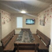 Располагается по адресу г.Гродно, д. Малая Ольшанка, ул. Центральная, 43. В доме есть всё для комфортного времяпрепровождения, полностью оборудована кухня, холодильник, микроволновая печь, посудомоечная машина, есть вся необходимая посуда, шампура, казан и решетки. Стол на первом этаже рассчитан на 14 посадочных мест. Спальных мест 8. Безлимитный интернет, телевидение, большая терраса. Во дворе оборудована многофункциональная барбекю зона, а так же деревянные качели