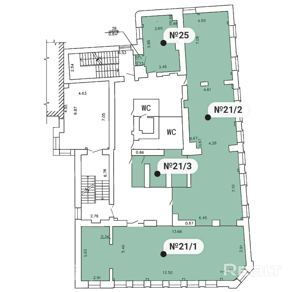 !СКИДКА 50% ПЕРВЫЕ 2 МЕСЯЦА! Сдаются в аренду офисные помещения кабинет №21/1 93,10 м² - 2790 руб. (~30 руб./м²) кабинет №21/2 106,30 м² - 3180 руб. (~30 руб./м²) кабинет №21/3 16 м² - 480 руб. (~30 руб./м²) кабинет №21/3 21,40 м² - 770 руб. (~36 руб./м²) Узнаваемое трехэтаж. здание в историческом центре Гродно в пешеходной зоне с высокой проходимостью. Удачное расположение обеспечивает всей инфраструктурой: кафе, магазины, остановки общественного транспорта, а также бесплатная парковка