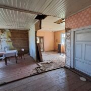 Дом высокий из бруса,1950 года постройки, очень просторный, с высокими стенами и огромный чердаком, но требует капитального ремонта и реконструкции, для возможности постоянного проживания. В доме имеется большой погреб.