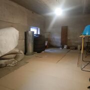 В доме имеется технический этаж, где расположены кладовая, котельная и гараж с ямой. На полу в доме уложен паркет, окна выполнены из ПВХ, натяжные потолки, установлены деревянные межкомнатные двери.