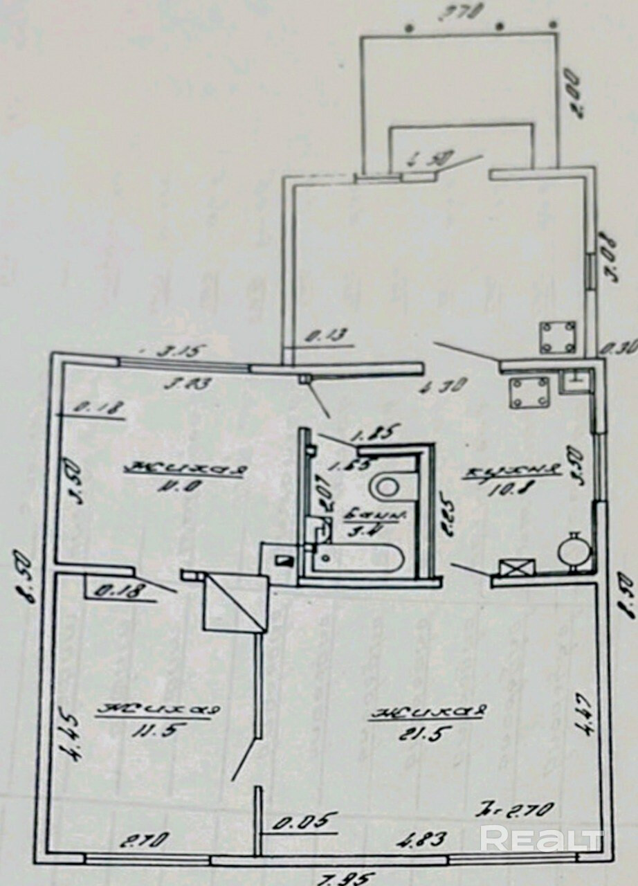 - 3 жилые комнаты, кухня, совмещенный сан.узел