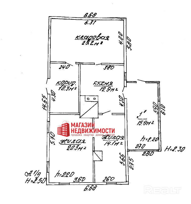 Дом из бруса, 1940 года постройки. Высота потолков- 2,20 м. Перекрытия- деревянный брус. Крыша — шифер волнистый. Окна — деревянные рамы.