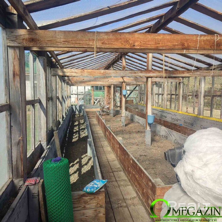 Участок огорожен, разработан. На участке кроме фруктовых деревьев - грецкий орех, сибирские кедры, кусты роз. Большая теплица под стеклом, огород, скважина, колодец, емкости под воду. Баня, подвал, миниптицеферма с курами.