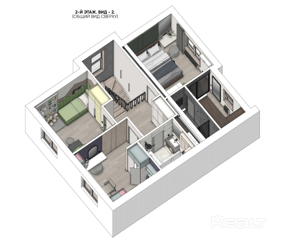 Второй этаж – свободная планировка, позволяющая разместить мастер-спальню с гардеробной, 1 или 2 детские и ванную комнату.