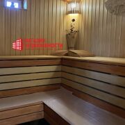 Баня: оборудован «теплый пол», материал полок – липа, топка – Harvia финского производства, просторная комната отдыха. Оборудованы кухня, душевая и туалет.