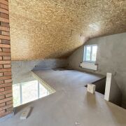 На первом этаже, предполагается гостиная с кухонным оборудованием, спальня, ванная комната с санузлом; имеется два выхода на террасу из кухни/гостиной, стены – блок 40 см, высота потолков 3 м2, дом утеплен, оштукатурен, окна ПВХ 4-х камерные пр-во РП, кровля фальцевая, вода-колодец на 8 колец, газ-центральный, в доме установлены радиаторы, теплые полы, установлен газовый котел DE Dietrich, бойлер, фильтры и т.п., все строительные материалы, система отопления и т.п. премиум класса, строили качественно для себя, световое решение выполнено по дизайн проекту, все продумано до мелочей, высокие потолки и большие панорамные окна обеспечивают полноту естественного освещения и простор, обустроен камин. Имеется большой гараж с секционными воротами, которые создают оптимальные условия для шумо- и теплоизоляции помещения. На 1/4 дома второй свет, что означает отсутствие потолочного перекрытия части гостиной, что создает высокое и просторное помещение, наполненное светом.
