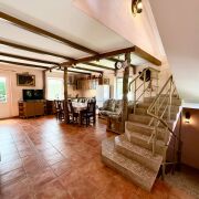 Общая площадь 138,1/ жилая 76,4/ кухня 34 м/кв, состоит из 5 комнат: 3 на первом этаже, 2 на втором и в цоколе бильярд, котельная, гостиная совмещенная с кухней и выходом на большую террасу.