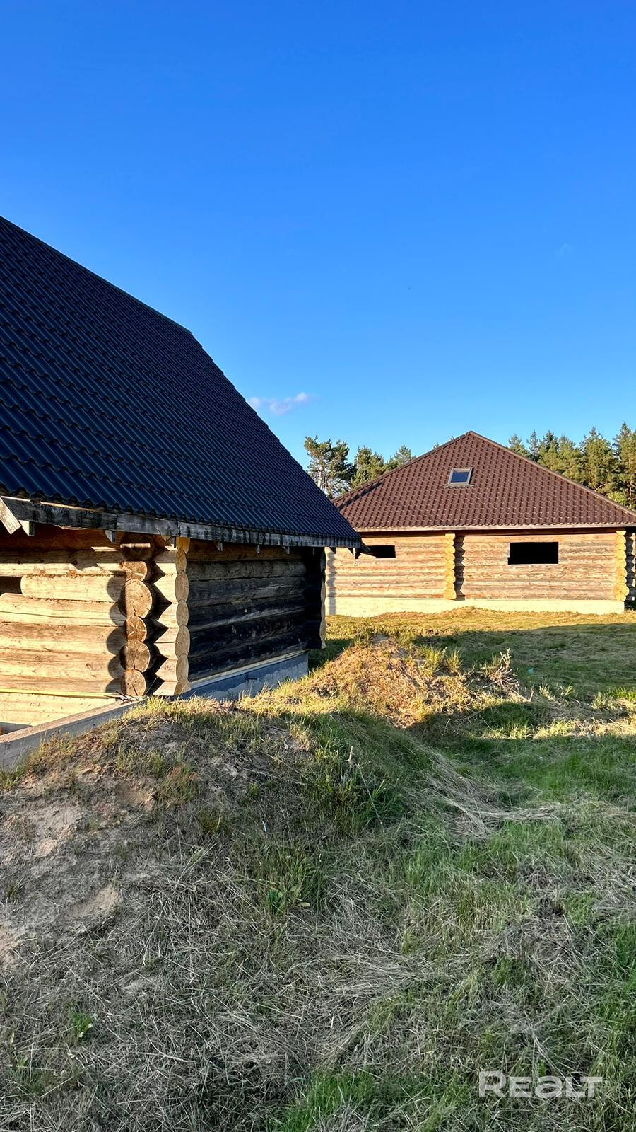 Дом (12м×12м плюс терраса) срублен в русскую чашу с сосны в зимний период, залит надёжный фундамент, крыша (более 280м²) накрыта качественной польской металлочерепицей. Окна на втором этаже вставлены. На участке срублена баня (6м×6м плюс большая терраса) из кедра ( стерильность в такой бане выше чем в операционной). Лесной массив на участке. Выход с бани в сторону реки. Строилось исключительно для себя. Есть электричество, скважина.