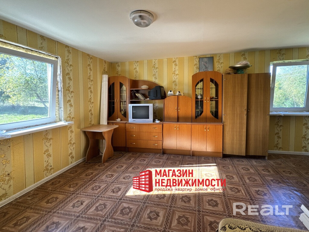 Жилой дом общей площадью 31,8 кв.м. Стены — блок, кирпич. Выполнен косметический ремонт. Входная группа обшита ОСБ. Все окна — ПВХ. Металлическая дверь. Мебель и техника остаются по согласованию. К дому пристроен гараж с ямой и двумя заездами.