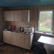 Кухня 11,8 кв.м.: стены утеплены, зашиты МДФ, полы линолеум, оборудована кухонной мебелью и техникой, раковина с подключением воды и выходом в канализацию. Плита электрическая.