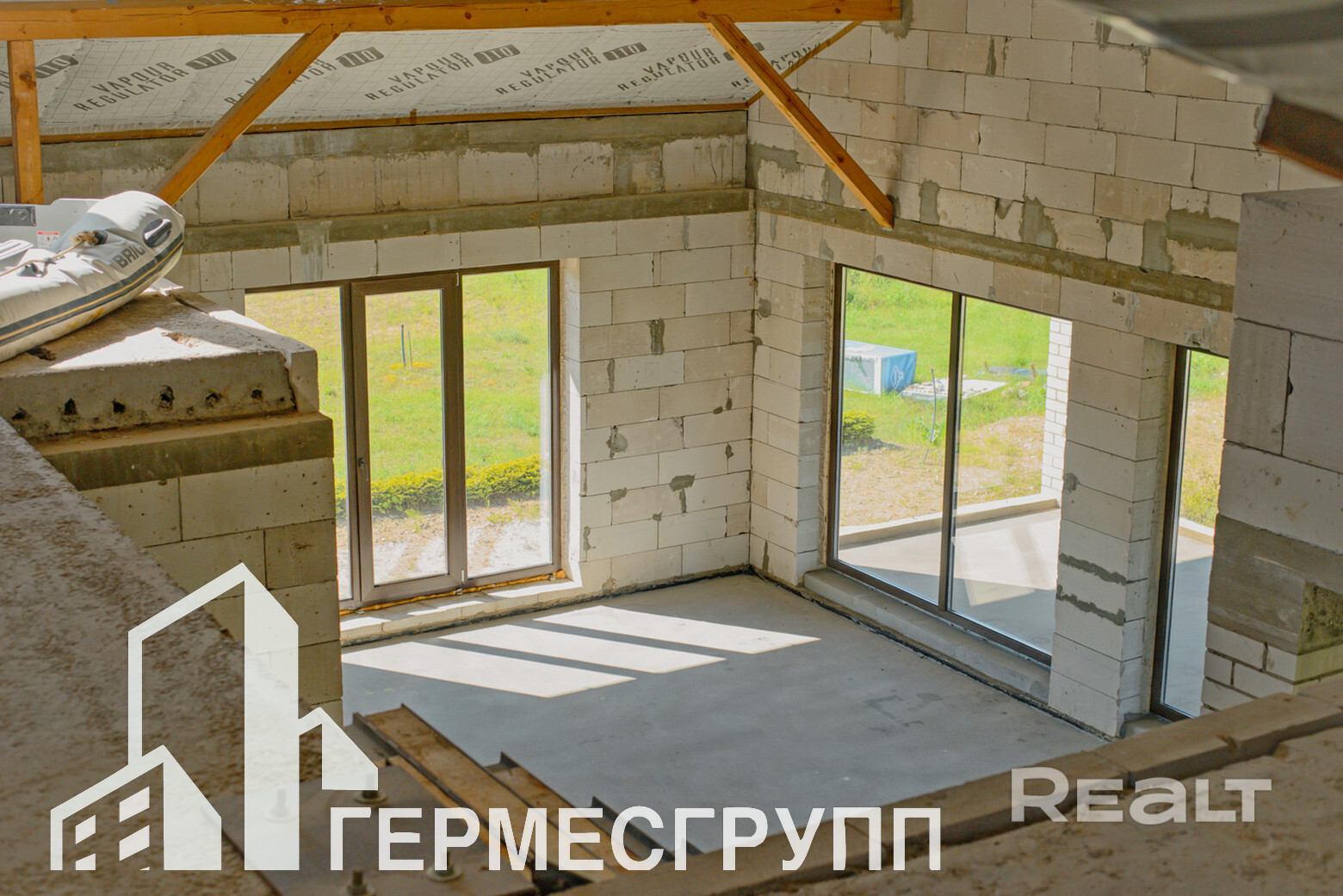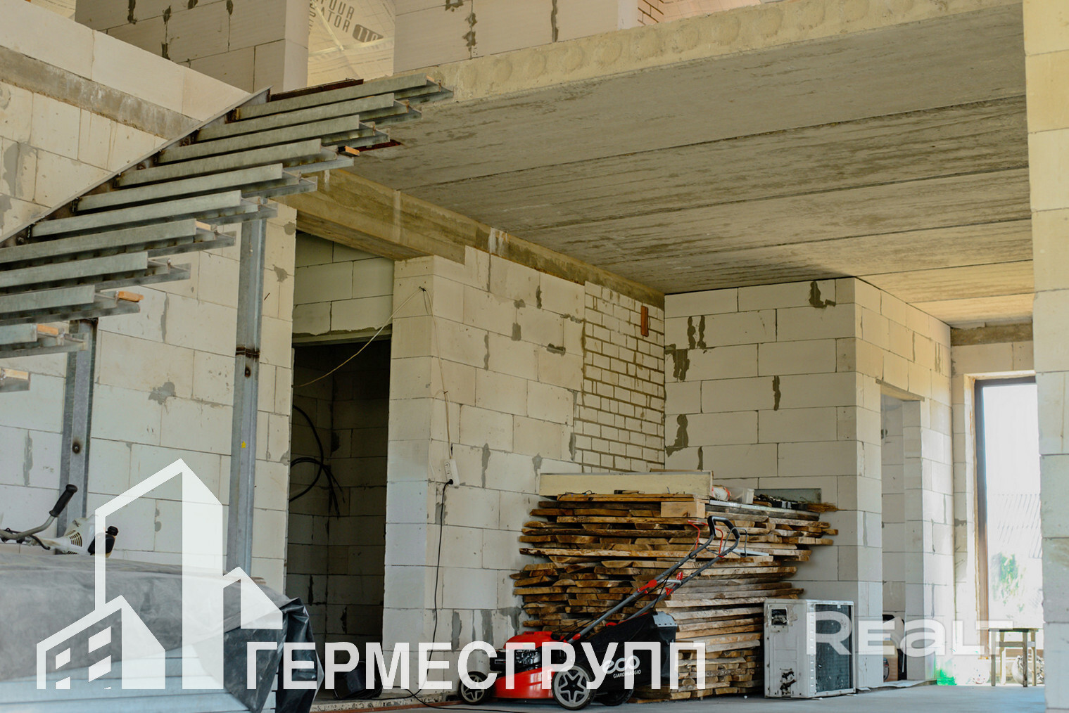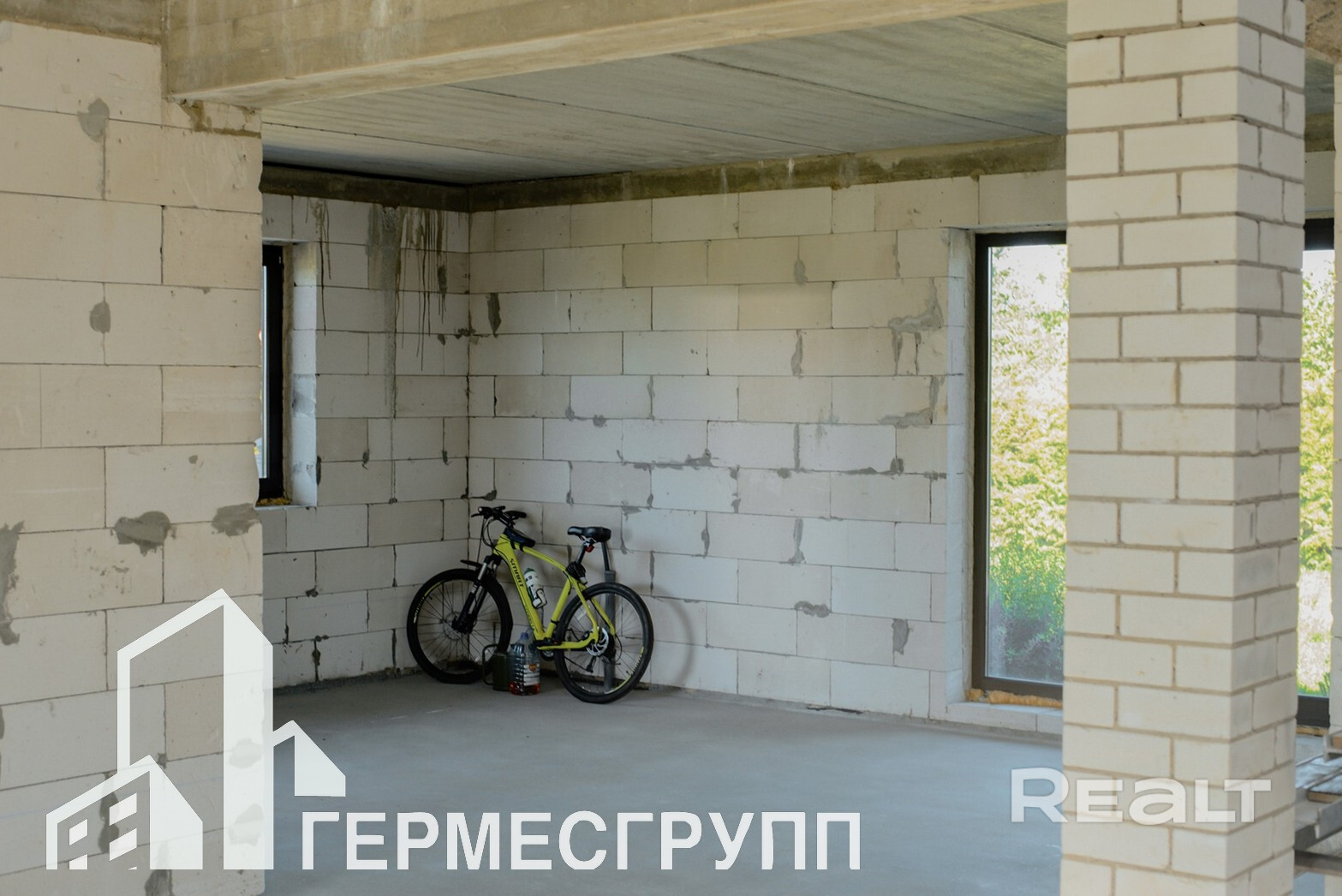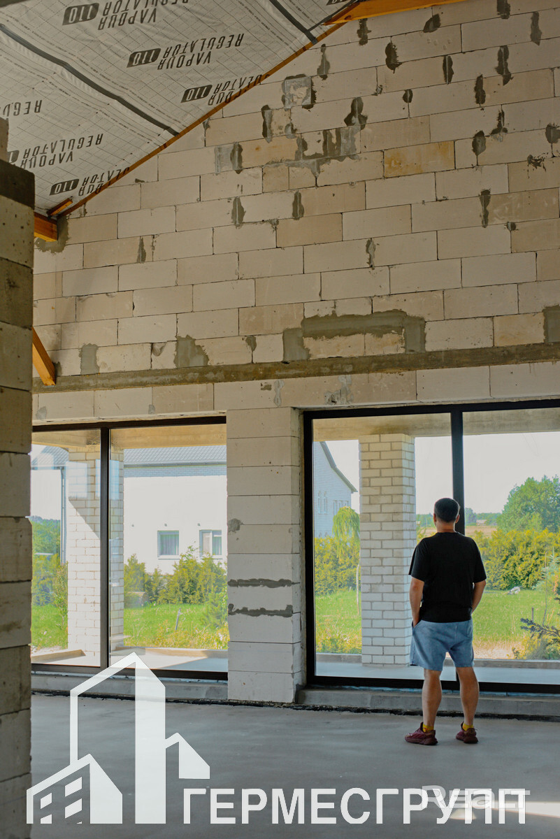 Дом без отделки, залит черновой пол.