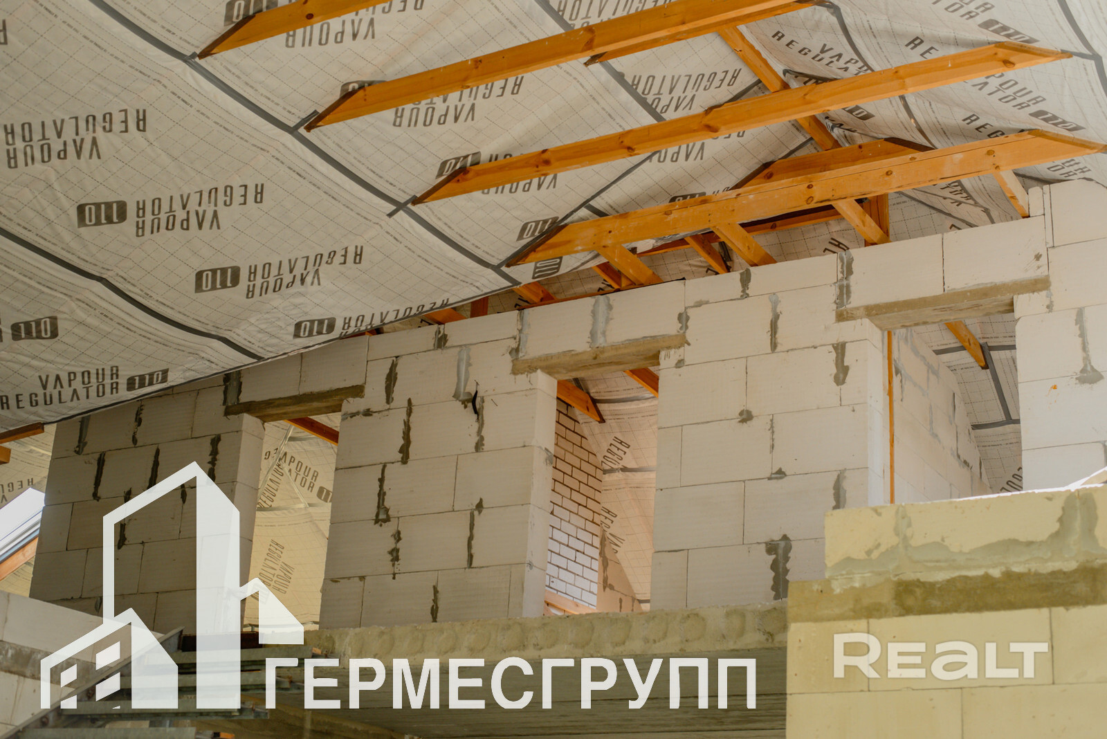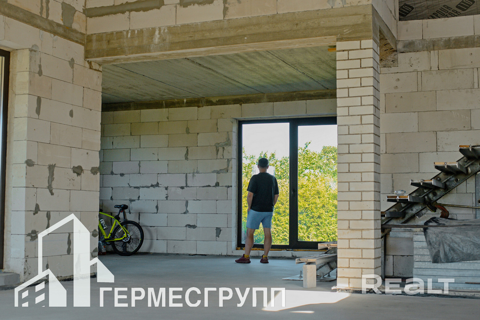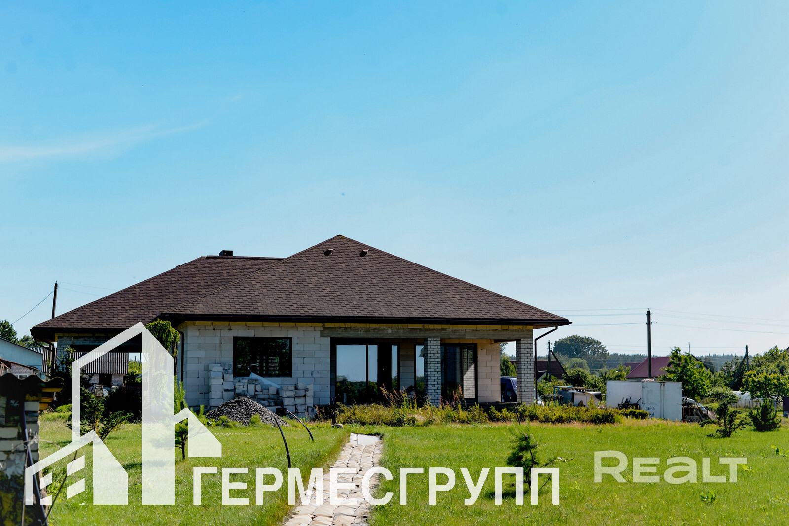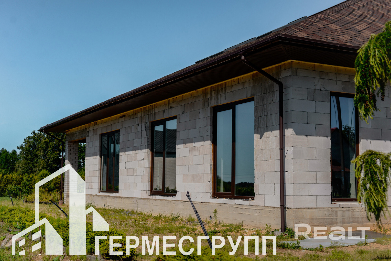 Дом без отделки, залит черновой пол.
