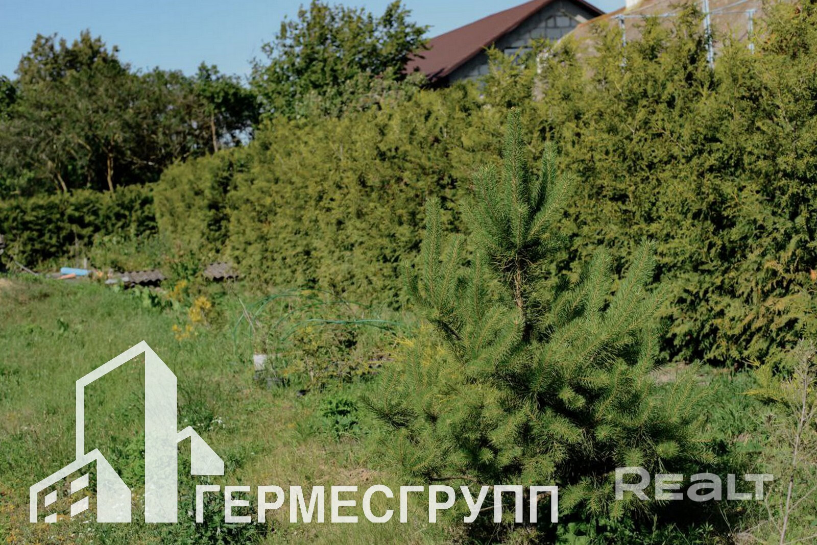 На участке высажены большое количество хвойных насаждений. Сад с различными эксклюзивными видами фруктов.