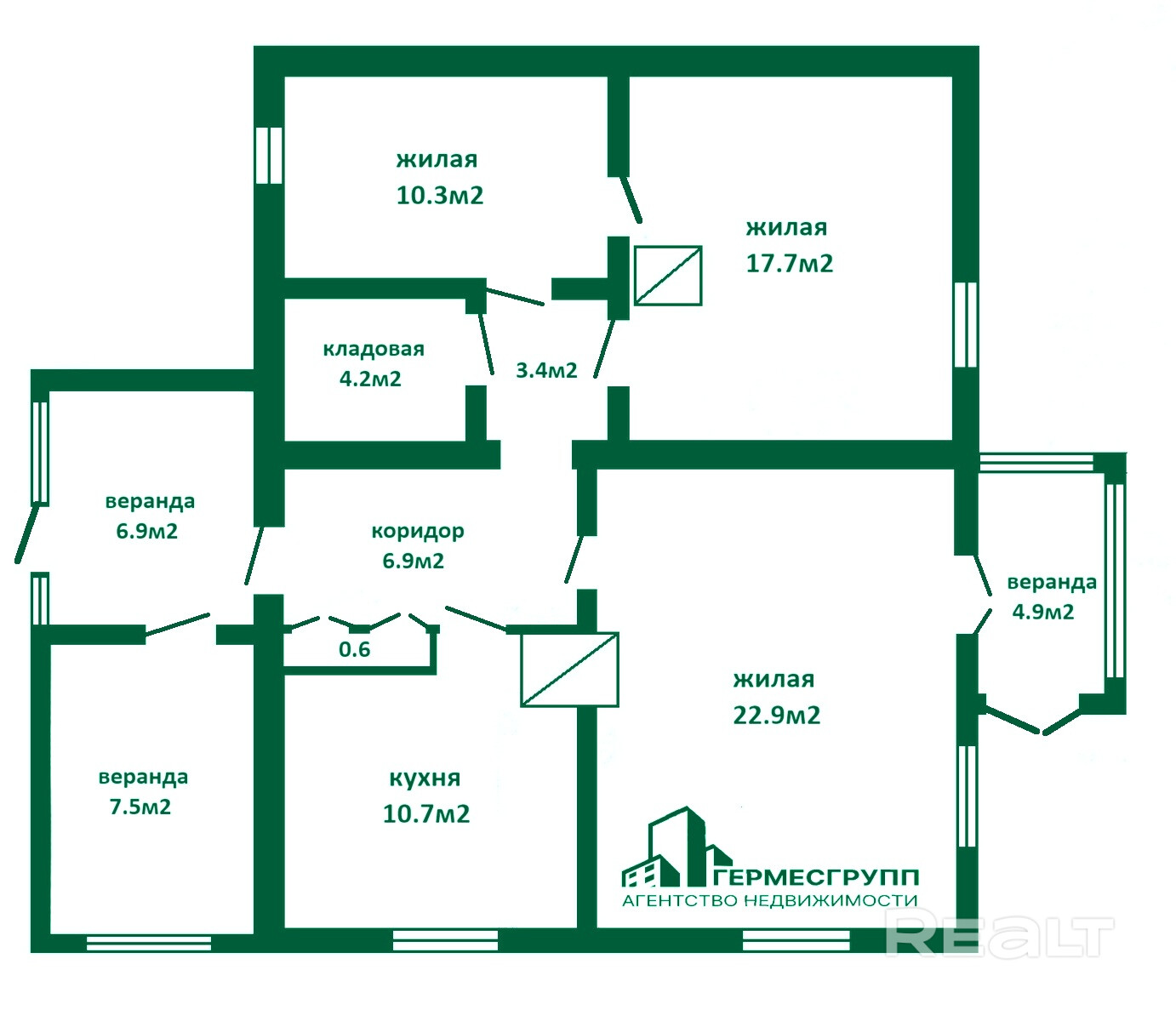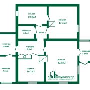 Общая площадь по СНБ 96.2 м2, общая 76.9 м2, кухня 10.4 м2.
