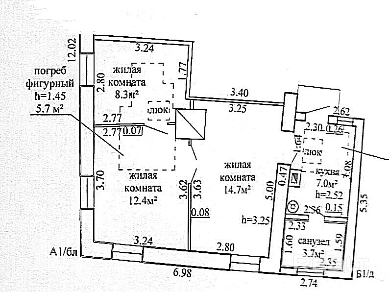 Продается 1/2 доля дома в самом центре Дятлово, площадью 46.1 м2, 3 комнаты, санузел и кухня. Имеются 2 подвала.