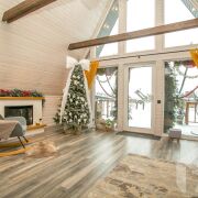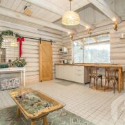 -Внутреннее пространство оформлено в единой стилистике натурального дома. Стены из оцилиндрованного бревна и деревянная отделка потолков подчёркивают природный характер дома, при этом интерьер выглядит светлым, чистым и современным. В гостиной - открытая планировка с кухонной зоной, печь-камин как смысловой и эмоциональный центр пространства, продуманное освещение и большие окна. Полы практичные и тёплые, интерьер выстроен так, чтобы дом был комфортен как для постоянного проживания, так и для отдыха.
