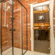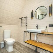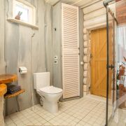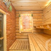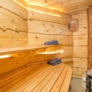 -В доме есть сауна, сделаны тёплые полы, есть выход на террасу. Рядом установлен банный чан - формат, который особенно ценят гости в любое время года.