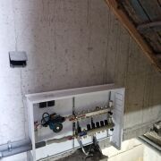 Коммуникации: электричество, канализация, водопровод, газ – центральные, отопление – двухконтурный котел, алюминиевые радиаторы на первом этаже и чугунные на втором. Электропроводка заменена.