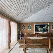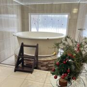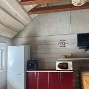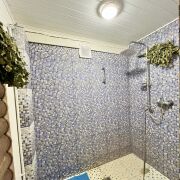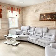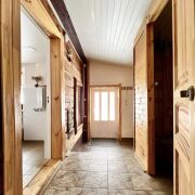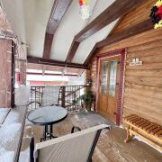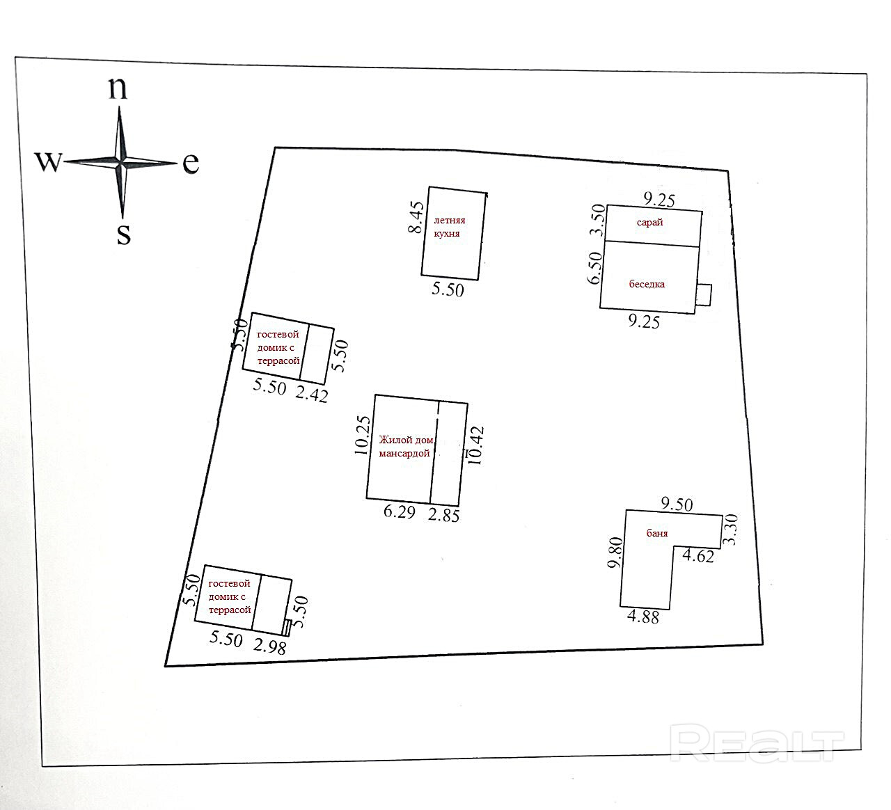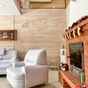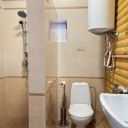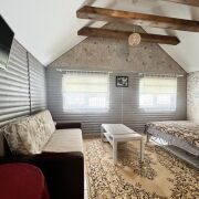 три дома: один – основной с мансардой и два гостевых с террасами. Наружные стены и отделка – всё из натуральных, древесных материалов, окна ПВХ, пол частично уложен натуральной доской, частично плитка, крыша – металлочерепица. В основном доме оборудована печь-камин, электроотопление, водонагреватель, кондиционер. На первом этаже находится кухня с установленной бытовой техникой, индукционная плита, посудомоечная машинка. Также находится просторный зал с атмосферным камином, раздельный с/узел, на втором этаже – спальные две комнаты. В гостевых домиках пол – плитка c подогревом, общей площадью по 30 кв.м., основной дом – 64 кв.м. Год постройки домов – 2018 г. Также на территории  имеется летняя кухня, площадью 46 кв.м, оборудована с/узлом, печью, бытовая техника, год постройки 2018. Имеется также беседка, используется для корпоративных мероприятий, вместительностью до 30 человек. В беседке витражные окна, материал стен – блок, крыша – металлопрофиль, общ. пл. помещения 60 кв.м. с установленной внутри мангальной зоной для комфортного проведения отдыха. Отдельное внимание уделяется бане, так как это не только сауна, но и наличие привлекательной купели с видом на просторы местности. В бане имеются сауна, с/у с установленной техникой, комната для отдыха. Беседка и баня были оборудованы для пользования с 2024 года. С задней части беседки построен вместительный сарай из блока, общ. пл. 32 кв.м., приспособлен для хранения хоз.инвентаря. Предусмотрена зона для активных игр детей. Также отдельно обустроена зона  барбекю для отдыха под открытым небом с интересным оформлением из камня.